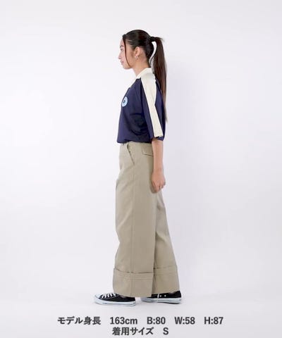 ウエスト周りのすっきりしたワイドチノは、タックインして着るのにぴったりな1着。
