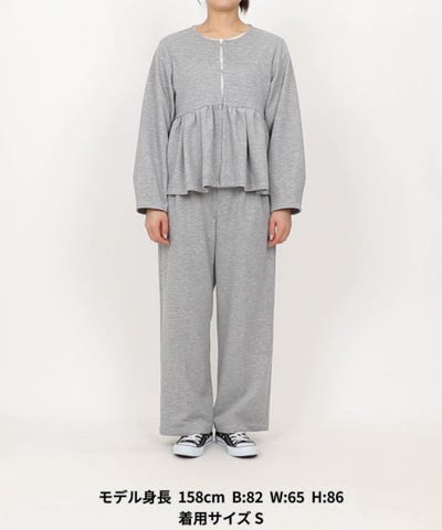 ●トップスは前開き仕様で、カーディガンとしても着用できるペプラムデザイン