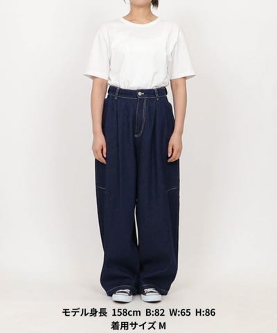 ボリュームのあるシルエットなので、トップスはコンパクトなものと合わせていただくのがオススメです。ロゴスウェットと合わせてラフなスタイリングにも、シアーアイテムやきれいめなシャツの大人カジュアルにも楽しめます。