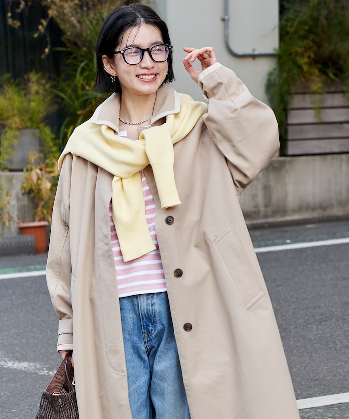 ベーシックにひとクセ添える、配色ステンカラーコート