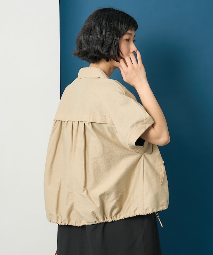 ●裾のドロストを絞ることで後ろがふんわりしたバルーンシルエットになり、気になる腰回りを自然にカバーしてくれます