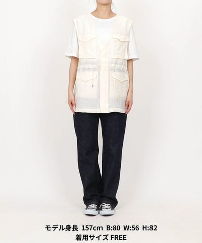 ●シボ感と透け感が魅力のトレンド素材、シアー生地を使用したミリタリーベスト