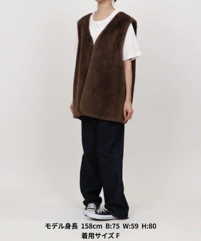 ●毛足短めのファーでエレガントになりすぎず、カジュアルな雰囲気で着用出来るファーベスト