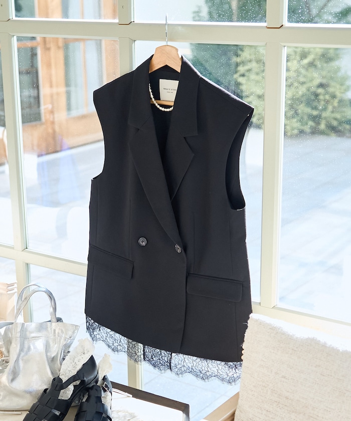 ●マニッシュな雰囲気と女性らしさを両方した、オンオフ活躍のテーラードジレ