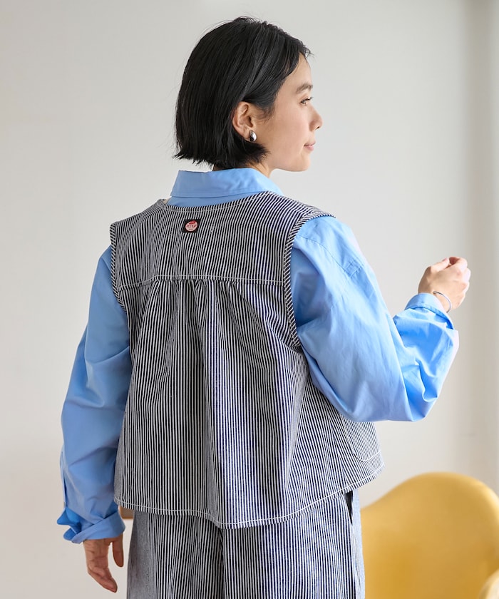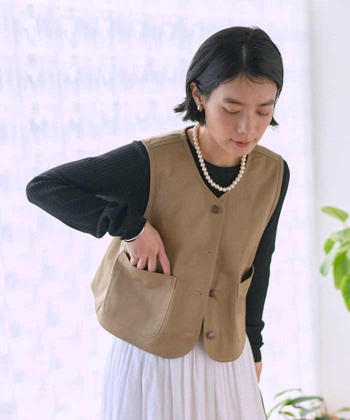 バックスタイルが目を惹くクリーンなツイルベスト