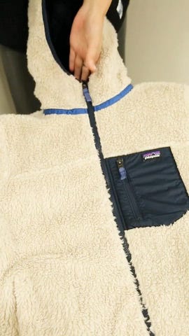 リバーシブルになっているので、日によってチェンジできるのは最高に便利!しかもさすがパタゴニアさま。とても暖かい。キッズサイズにつきシルエットはタイト目。ファスナー閉めると骨盤が広いためぴったりでした。