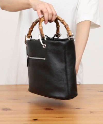 ●高級感ある牛革にバンブーハンドルを備えた2wayバッグ