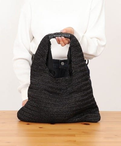 ●トライアングル型のワンハンドルデザインがトレンド感のある編みバッグ