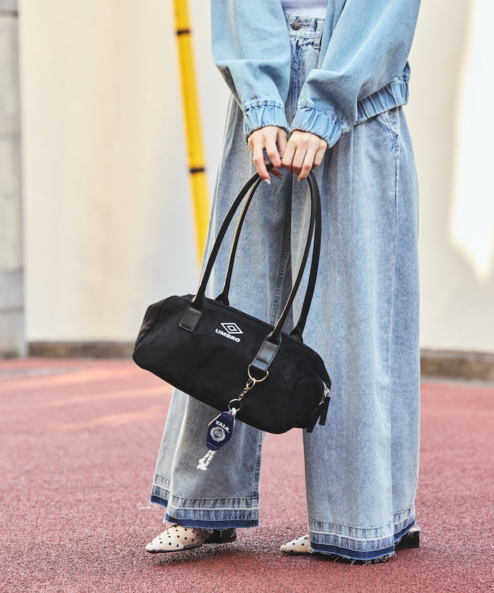 温かみのあるスエードライク素材を使用した、UMBROらしいボストンバッグ