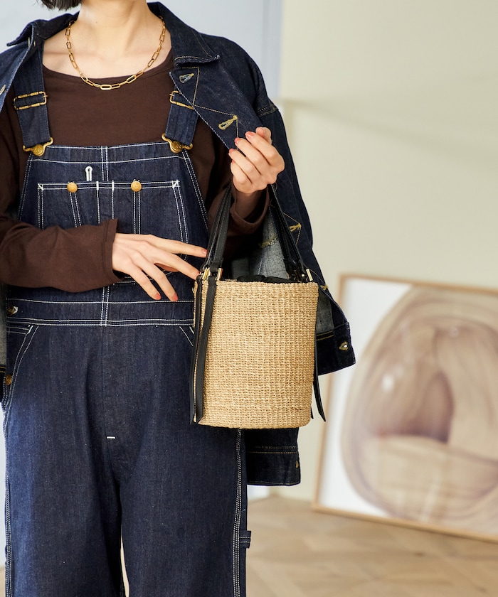 ●上質なファインアバカにレザーハンドルの組み合わせをした、涼しげなバケツ型バッグ