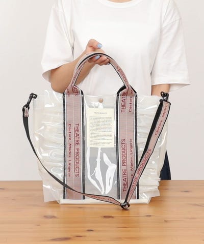 ジャガードロゴテープとフリルデザインを掛け合わせた、存在感たっぷりの別注クリアバッグ
