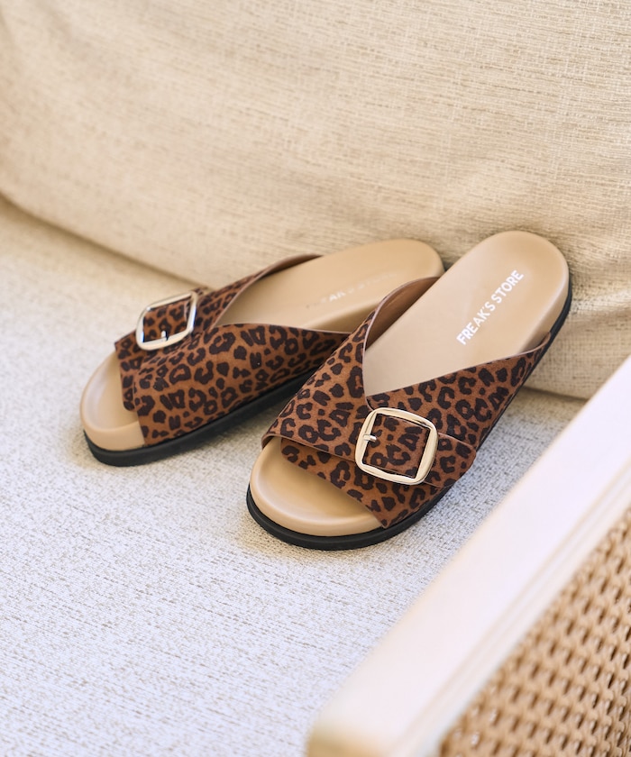 ●大きめのバックルが洗練されたアクセントを効かせるフラットサンダル