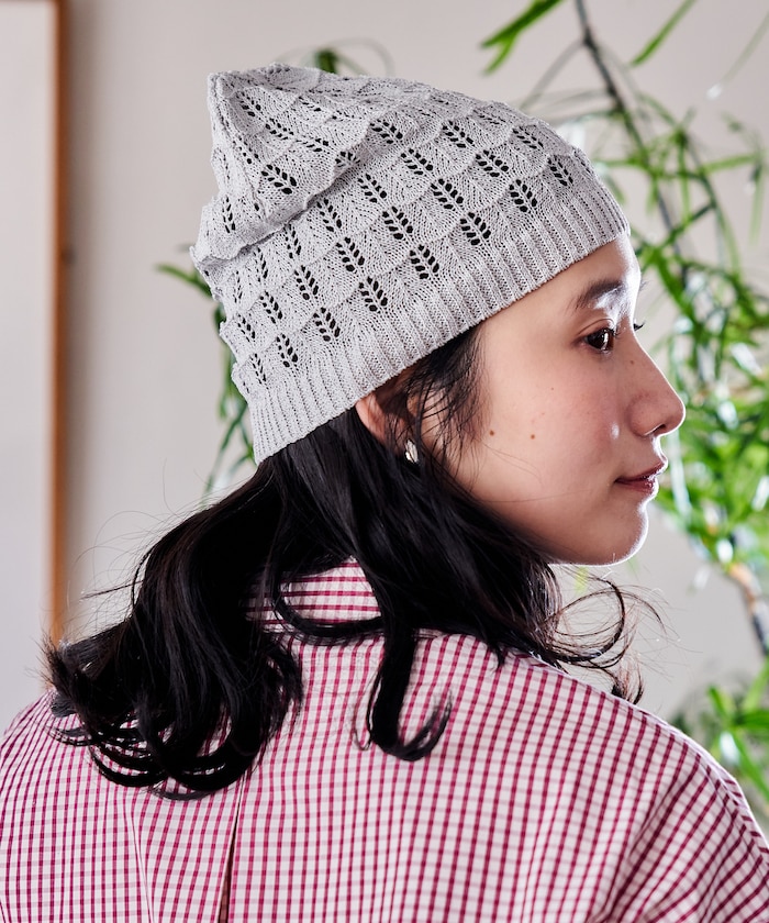 ●涼し気な透かし柄が印象的な、かぎ編みデザインのニット帽