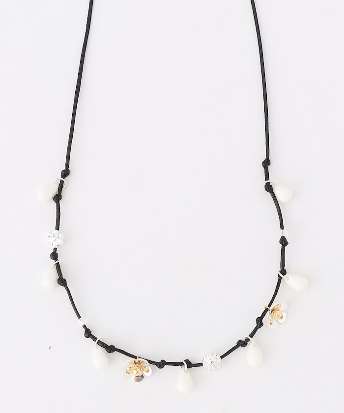 ●2種類のフラワーモチーフのビーズとドロップ型ビーズを交互に配したコードネックレスです