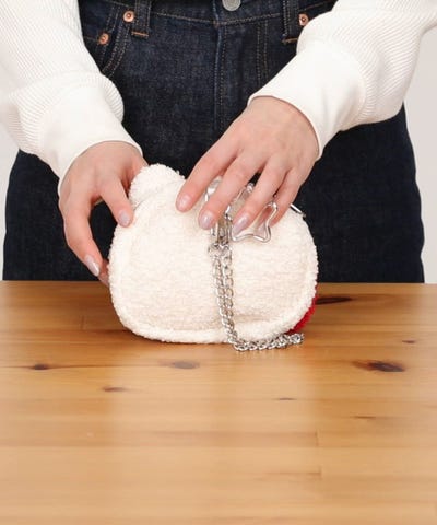 ●アイコニックなリボンで顔を隠した「ハローキティ」ポーチ