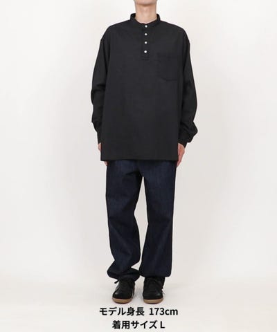 リラックスフィット リネン混 バンドカラー プルオーバー シャツ
