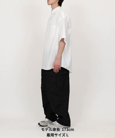 ●適度な緩さが魅力のシンプルな半袖バンドカラーシャツ