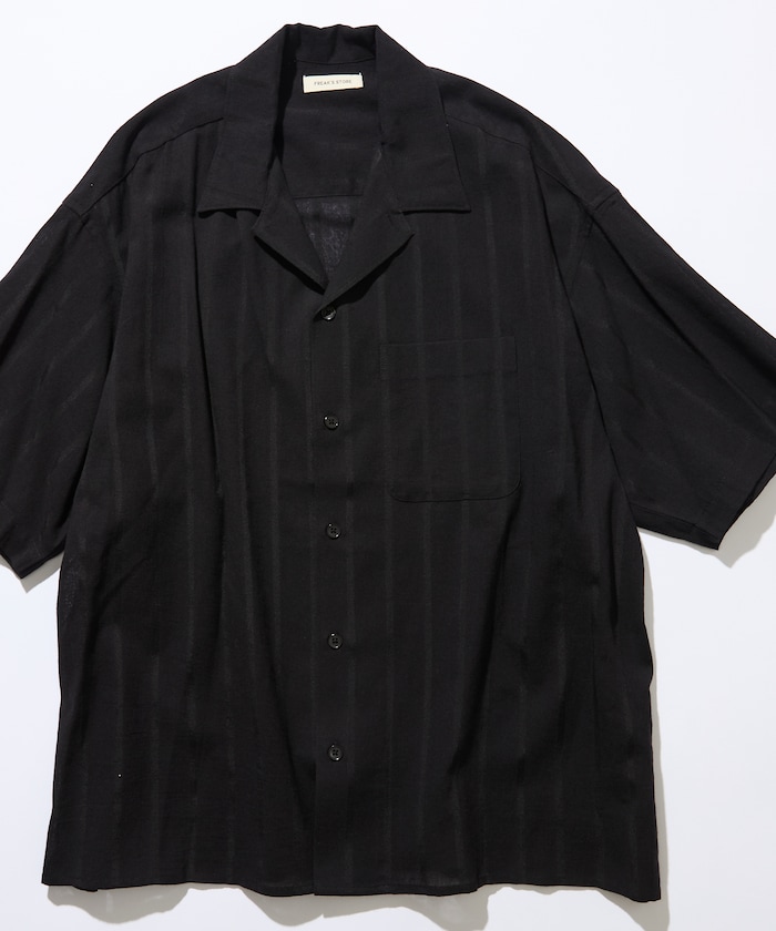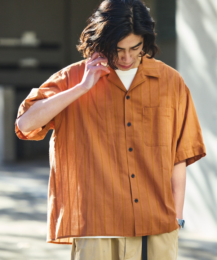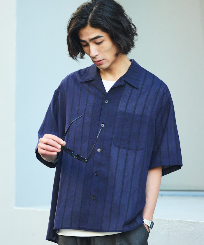 ビッグシルエット シャドーストライプ オープンカラー シャツ