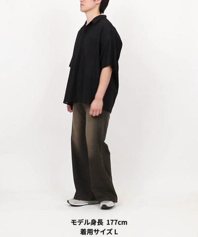 ビッグシルエット シャドーストライプ オープンカラー シャツ