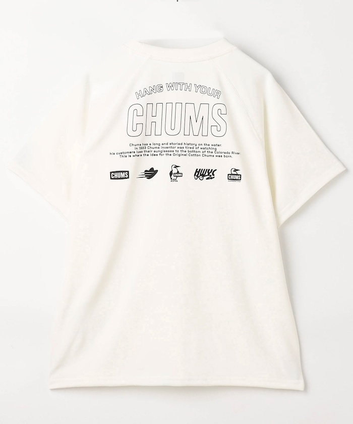 1983年、CHUMSは一人のリバーガイドによって生まれました。ガイド中のサングラス紛失を防ぐ方法はないかと考え、生まれたのが紐でサングラスを固定するメガネストラップ「CHUMSオリジナルリテイナー」。この商品からCHUMSがスタートしたのです。ハリケーンスウェットシリーズなど、大人気ヒット商品が続々と誕生しました。『「Hang with your CHUMS!」これからもずっとCHUMSは友だち。CHUMSと一緒に出かけよう!』を合言葉に、みんなが親しみを感じられて、フレンドリーなものをこれからもつくっていきたいと考えています。
