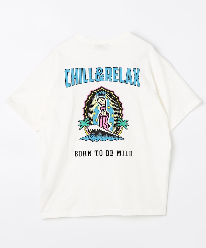 ヴィンテージ感あるグラフィックが映える、CHILLAXプリントTシャツ