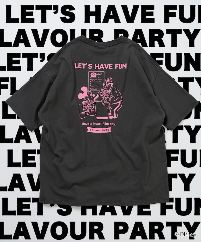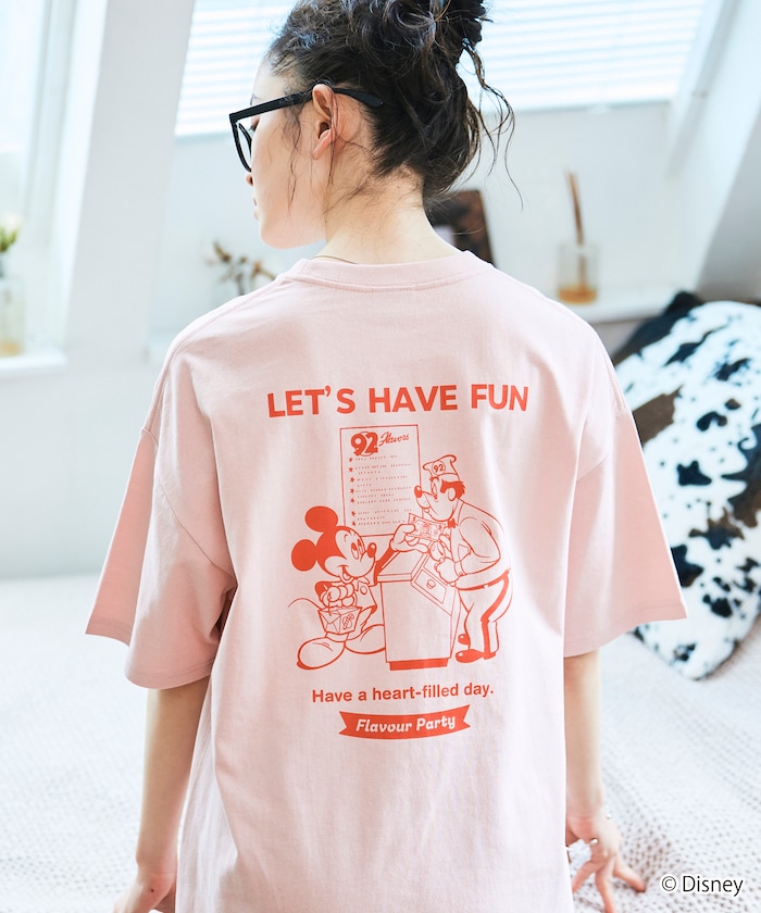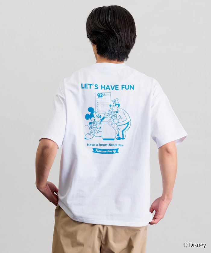 ●大人気のミッキーマウスデザインをバックにプリントした別注Tシャツ