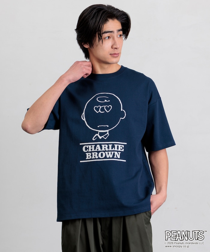 別注 チャーリー・ブラウン プリント クルーネック Tシャツ