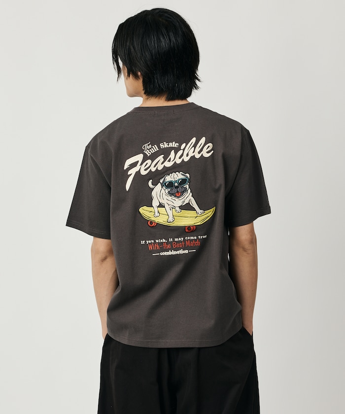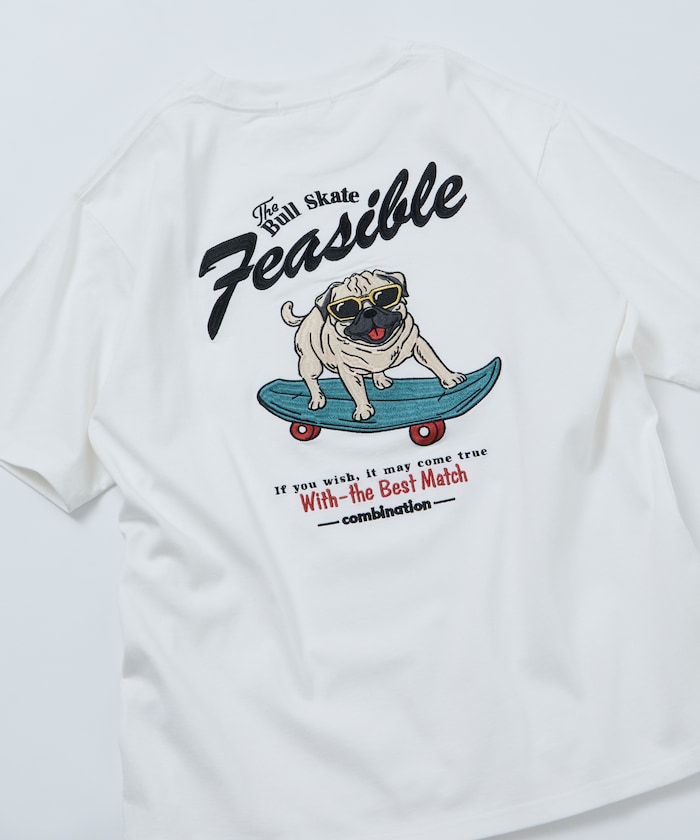 ビッグシルエット ドッグモチーフ刺繍 クルーネック Tシャツ