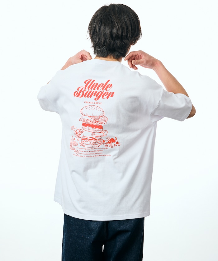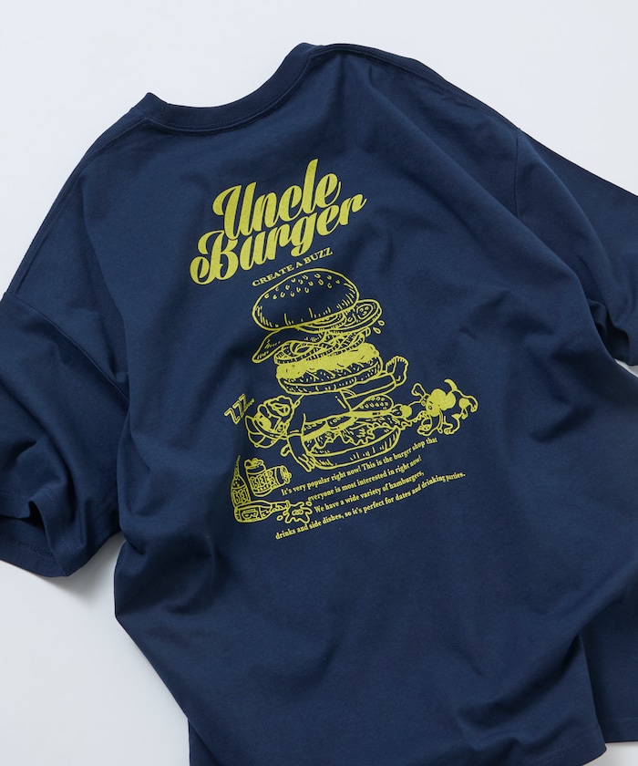 ●背面はハンバーガーモチーフの大きなプリントデザインをレイアウト