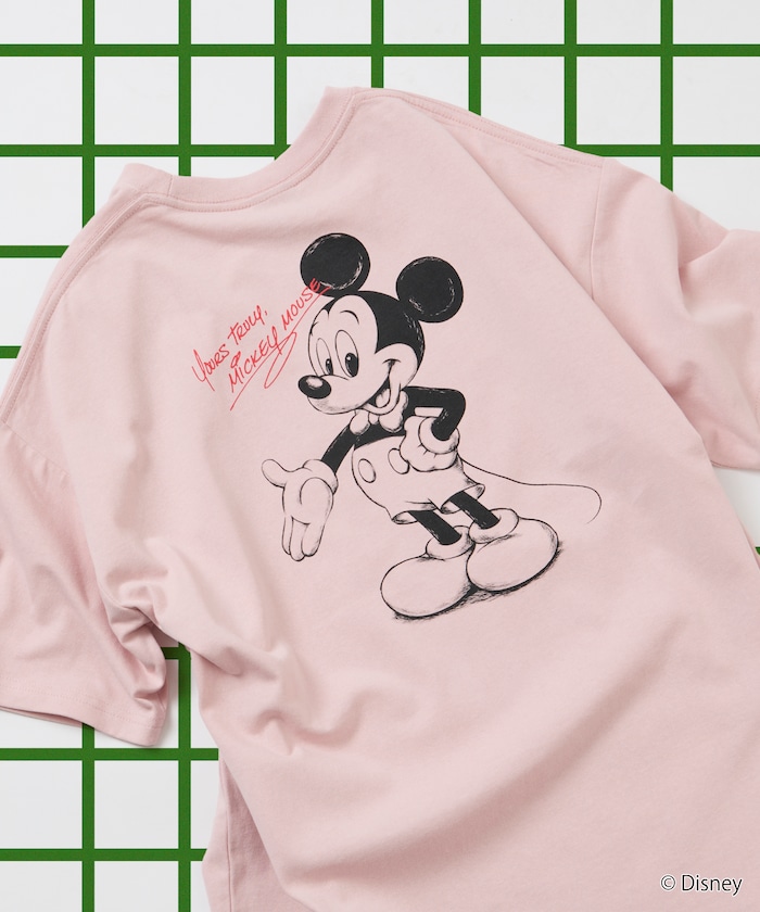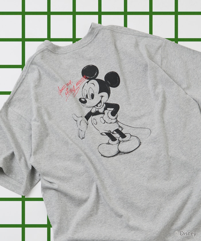 ●モノクロのミッキーマウスのグラフィックをプリントした別注Tシャツ