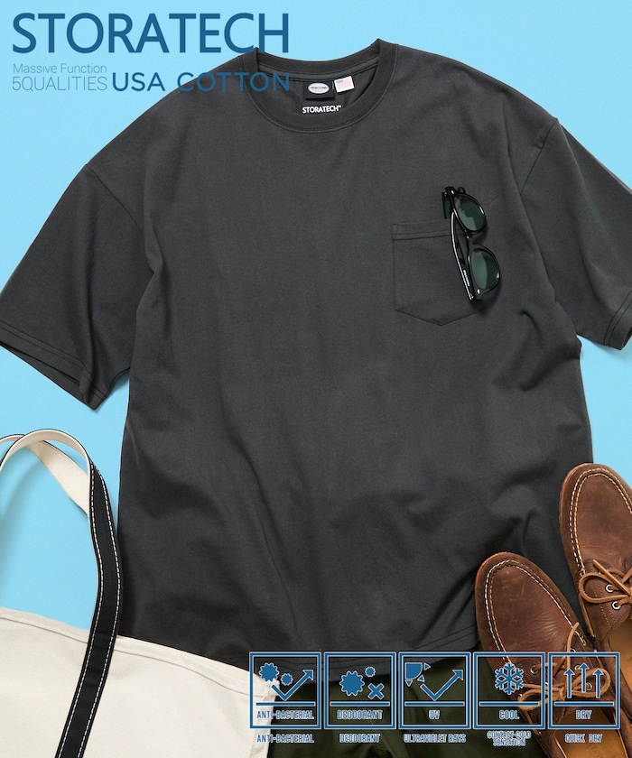 ストラテック ビッグシルエット クルーネック ポケットTシャツ