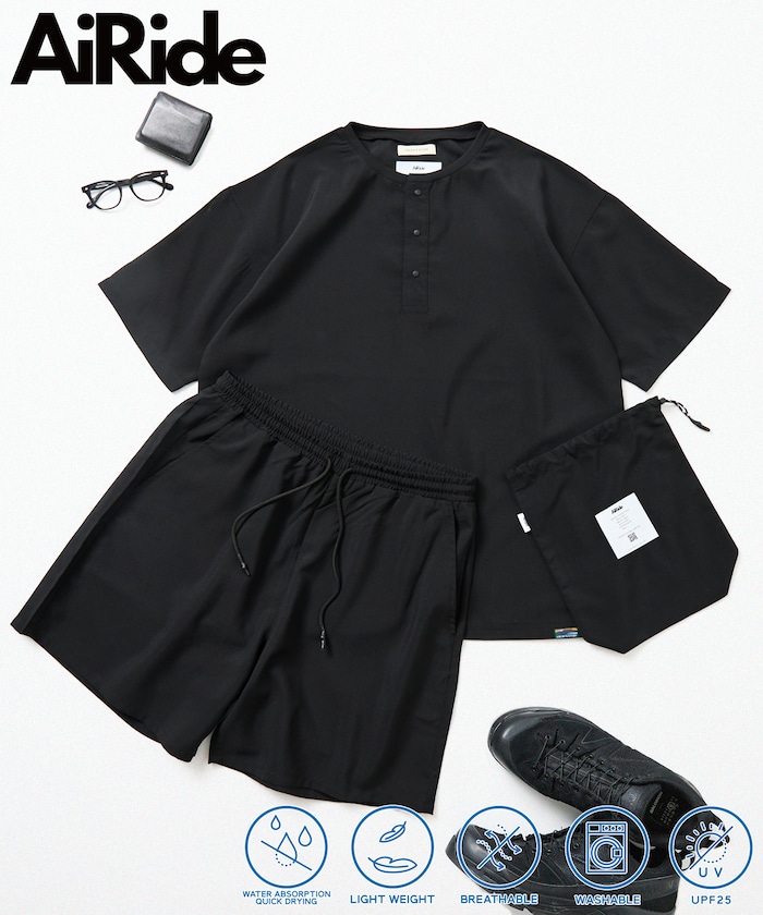 リラックスフィット AiRide パッカブル ヘンリーネックトップ セットアップ