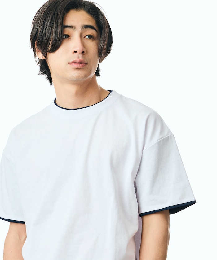 リラックスフィット 配色フェイクレイヤード クルーネック Tシャツ