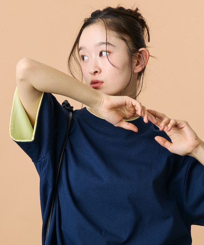 ●レイヤード風の配色生地を付属した袖口と首元がデザインアクセント