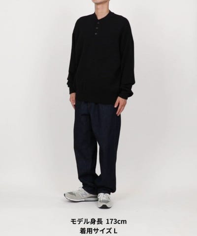 リラックスフィット スウェットライク ヘンリーネック ニット