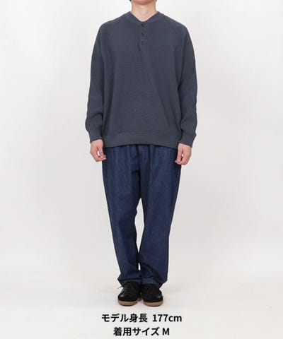 ●程よい厚みと適度な伸縮性を保つ、片畦編みのヘンリーネックニット