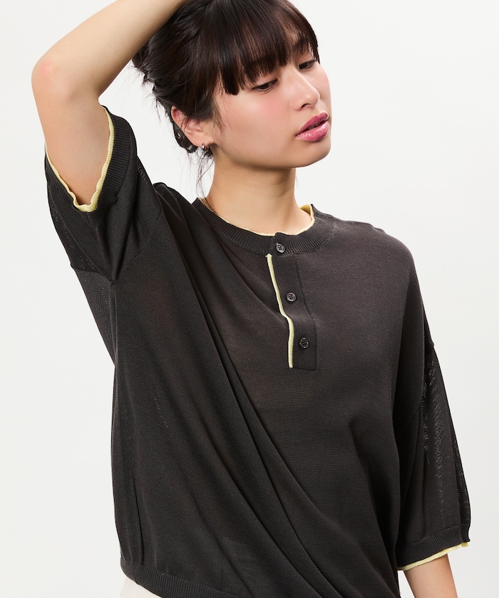●シンプルながら存在感のある、ヘンリーネックデザインのニットTシャツ