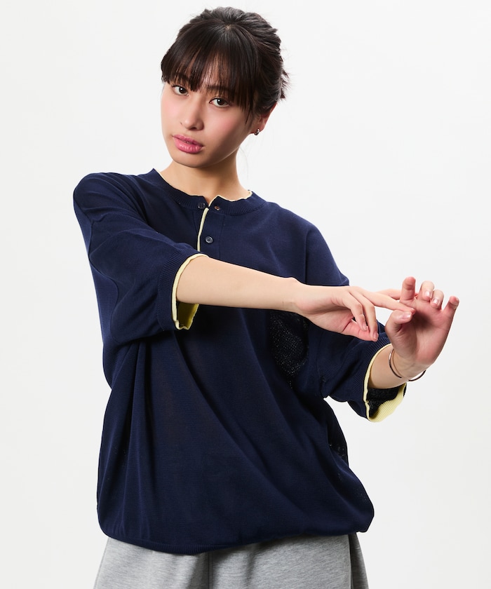 リラックスフィット 配色ヘンリーネックニット