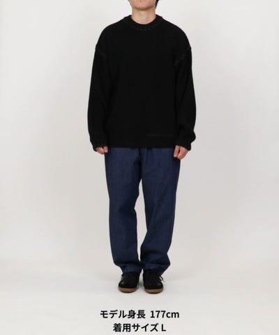 リラックスフィット ハンドステッチデザイン クルーネックニット