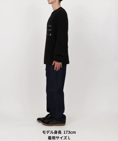 リラックスフィット レタード刺繍 クルーネックニット