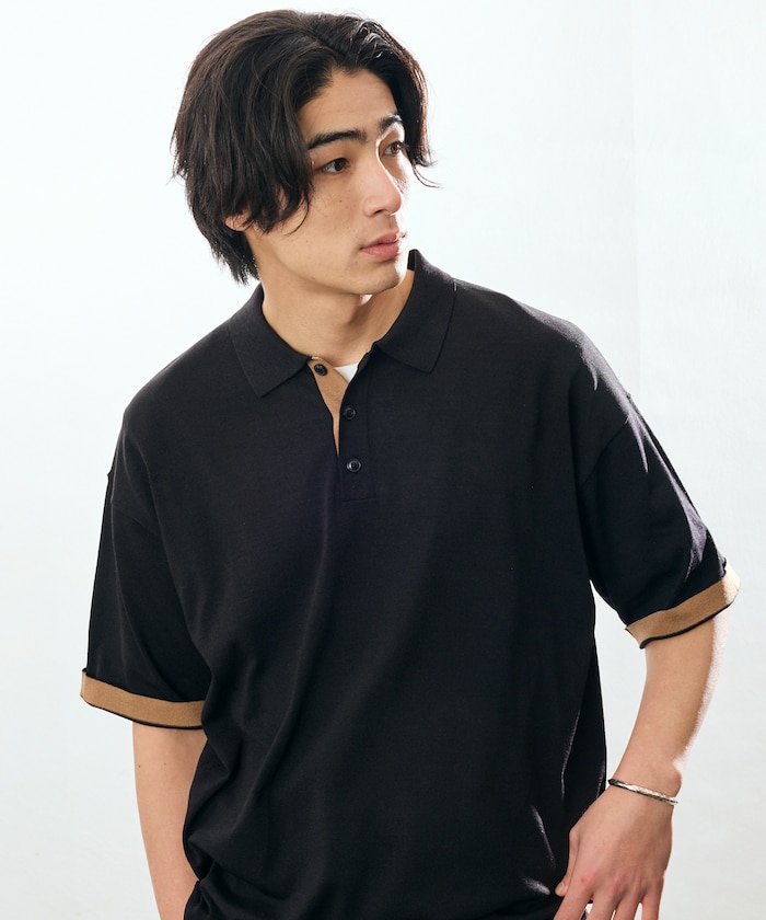 リラックスフィット クールタッチ 配色 ニットポロシャツ
