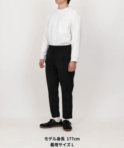 ゆとりがありながらテーパードするシルエットの為、様々なアイテムとのスタイリングが可能です。ベーシックなトップスはもちろんの事、ストリートテイストのアイテムとの相性も良い1着です。