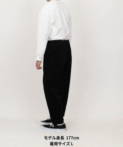 ●裾にかけてテーパードするワイドシルエットは、スタイルを選ばず着用可能