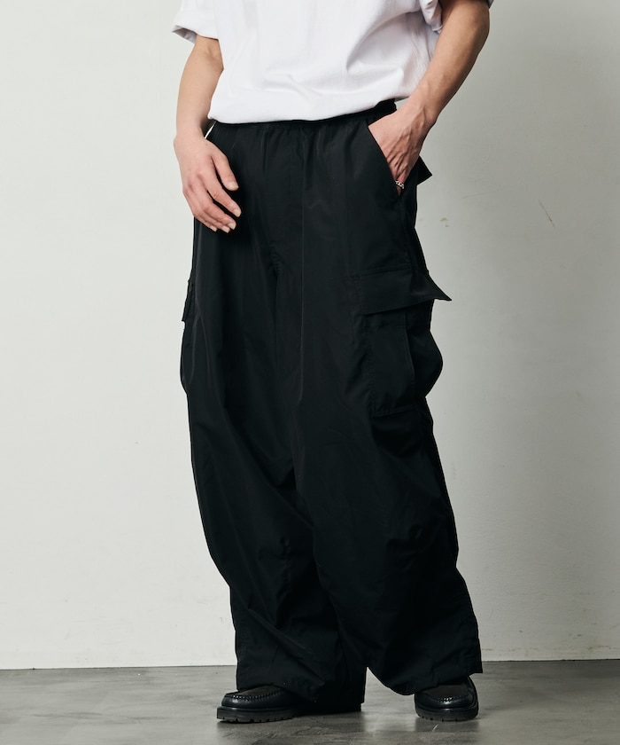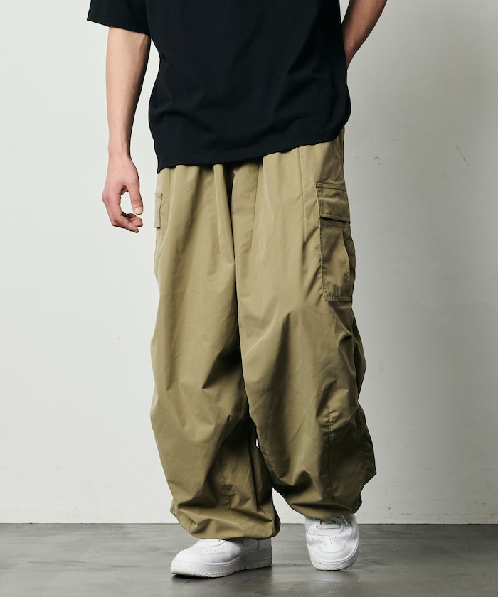 ワイドシルエット ポリエステルリップストップ カーゴパンツ