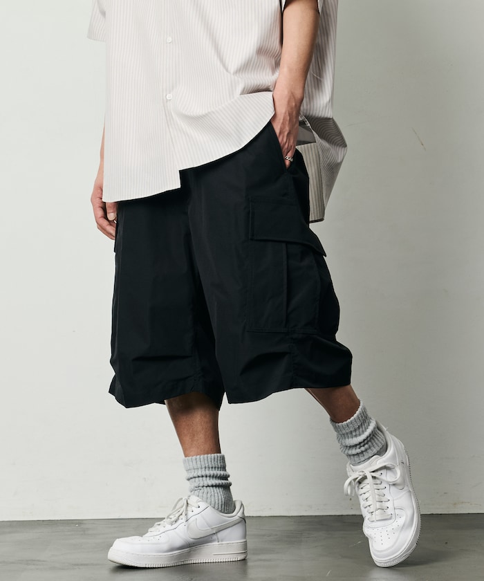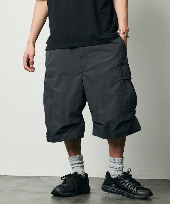 ワイドシルエット ポリエステルリップストップ カーゴショーツ