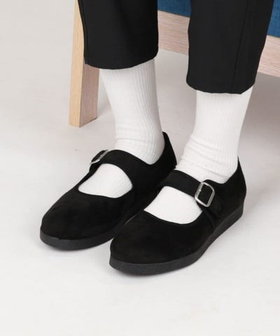 ●キレイめからカジュアルまで対応可能なスエード調のメリージェーンタイプのシューズ
