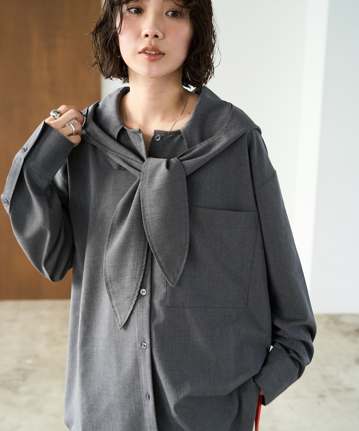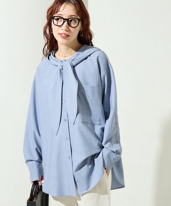 スラックスと合わせて、フードデザインを大人っぽくアップデート!ボウタイは軽く結んで、ローファーを合わせると品のある印象に◎