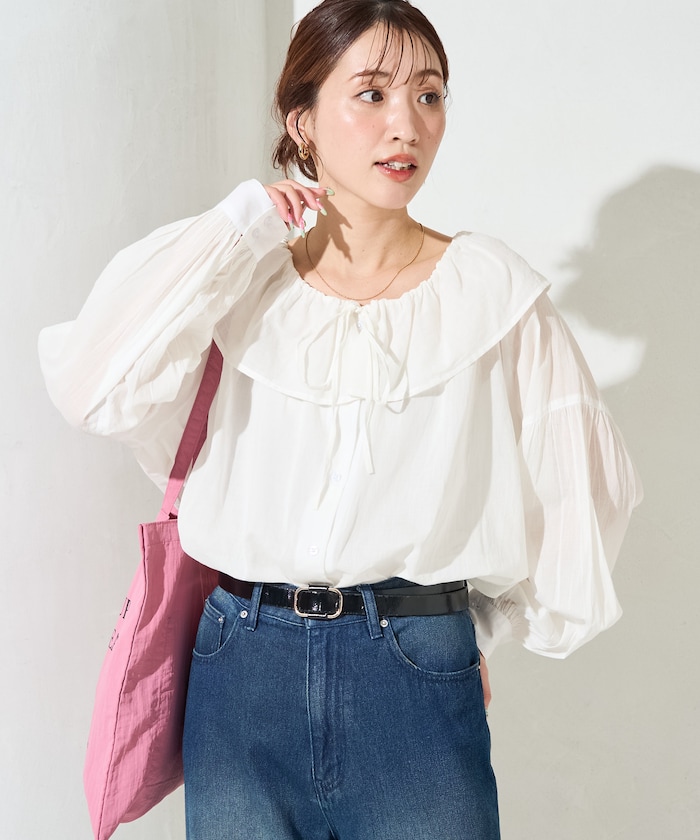 存在感のあるフリルブラウスは、デニムやスラックスと合わせるだけで大人フェミニンなカジュアルスタイルが完成。