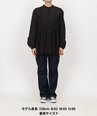 ふんわりシルエットと軽やかなシアーが女性らしいギャザーブラウス