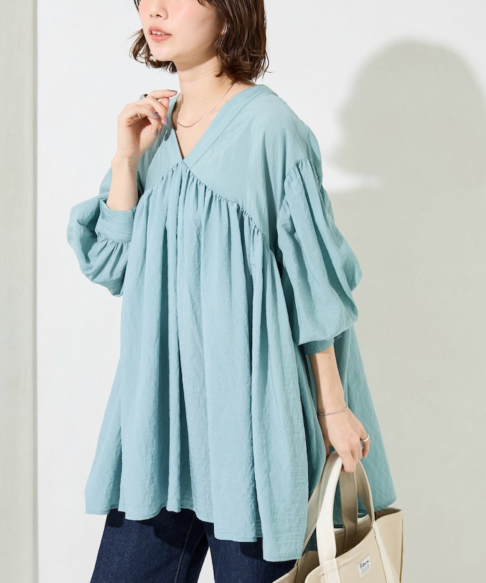 ●ゆるっとしたサイズ感と、ぽわんとしたボリュームスリーブが女性らしい印象に